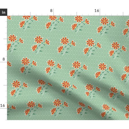 Batik Floral Retro Home Decor Mint Coral Fabric Printed By
