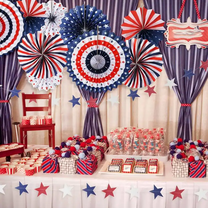 Patriotic decorations american flag party supplies 45 pcs patriotic party supplies including paper fans banner shades glasses balloons star confetti hanging swirl. 43 out of 5 stars 26. Free shipping on orders over 25 shipped by amazon.