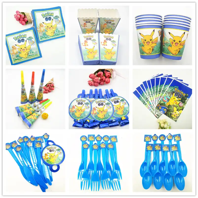 Pokemon Birthday Decoration Disposable Tableware Se Cups Napkins