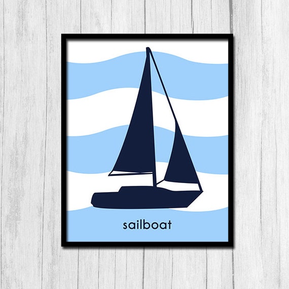 Sailboat Decor Decorations For Kids Bathroom Prints Nautical Etsy