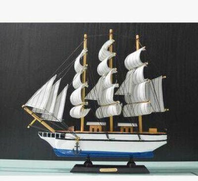 Wooden Deep Blue Sea Model Sailboat 17 Beach Decoration