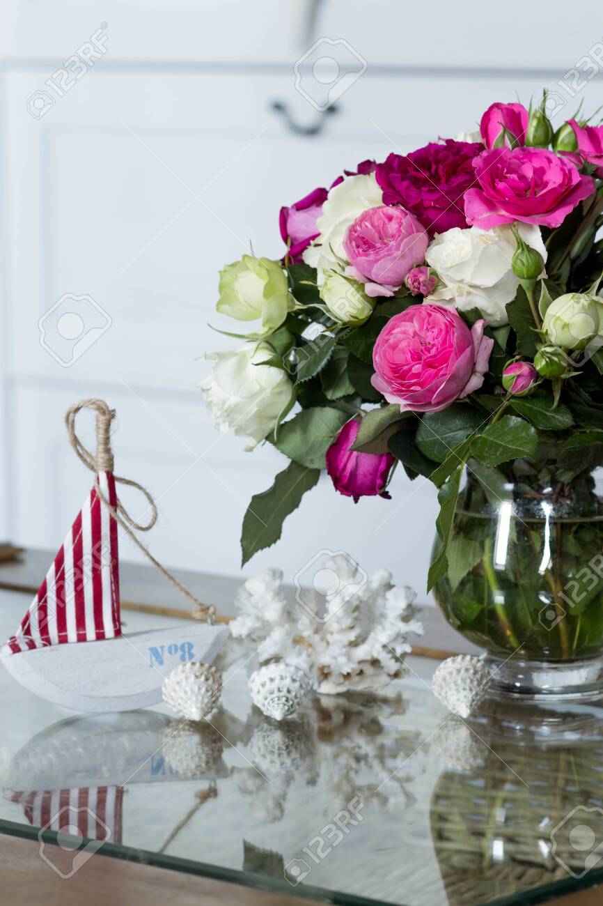 Interior In Hampton Style Fresh Flowers Shells Sailboat