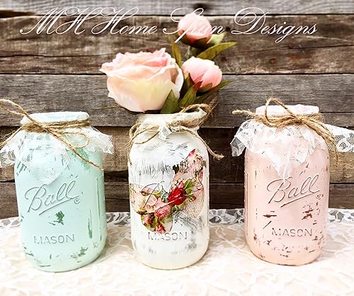 Amazon Com Shabby Chic Mason Jar Set Summer Decor Spring Decor