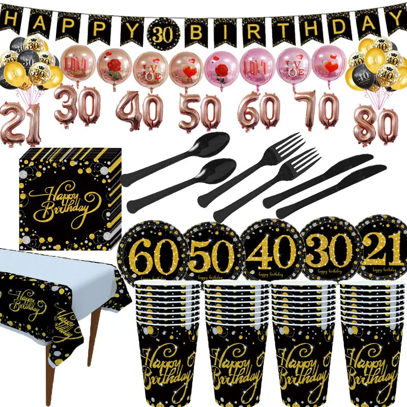 New Theme Party Disposable Black Gold Powder Gold 30 Years 40