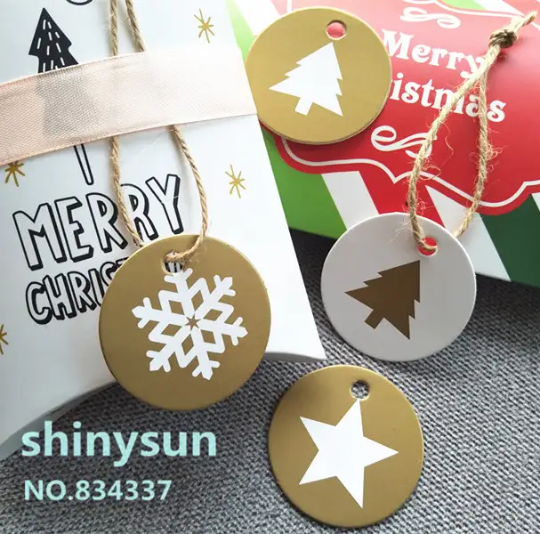 100pcs Lot 4 Style Gold Circular Tag Christmas Decorations Hang