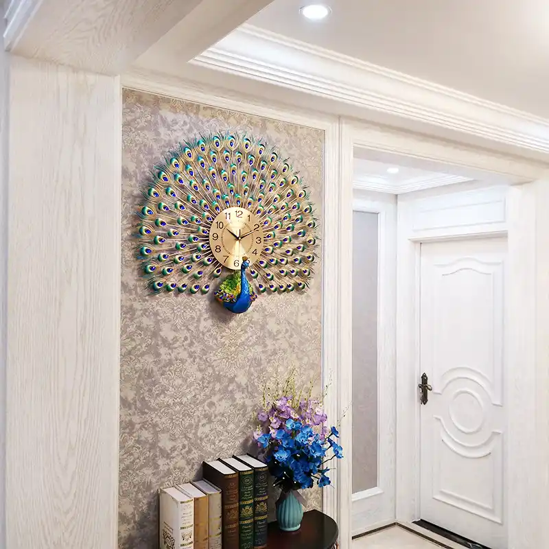 Large Peacock Wall Clock Modern Design Home Decor Wall Watch