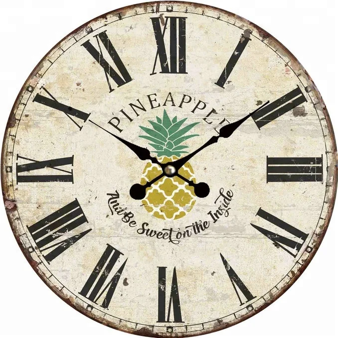 Cute Fancy Vintage Pineapple Pattern Mdf Wall Clock For Home Decor