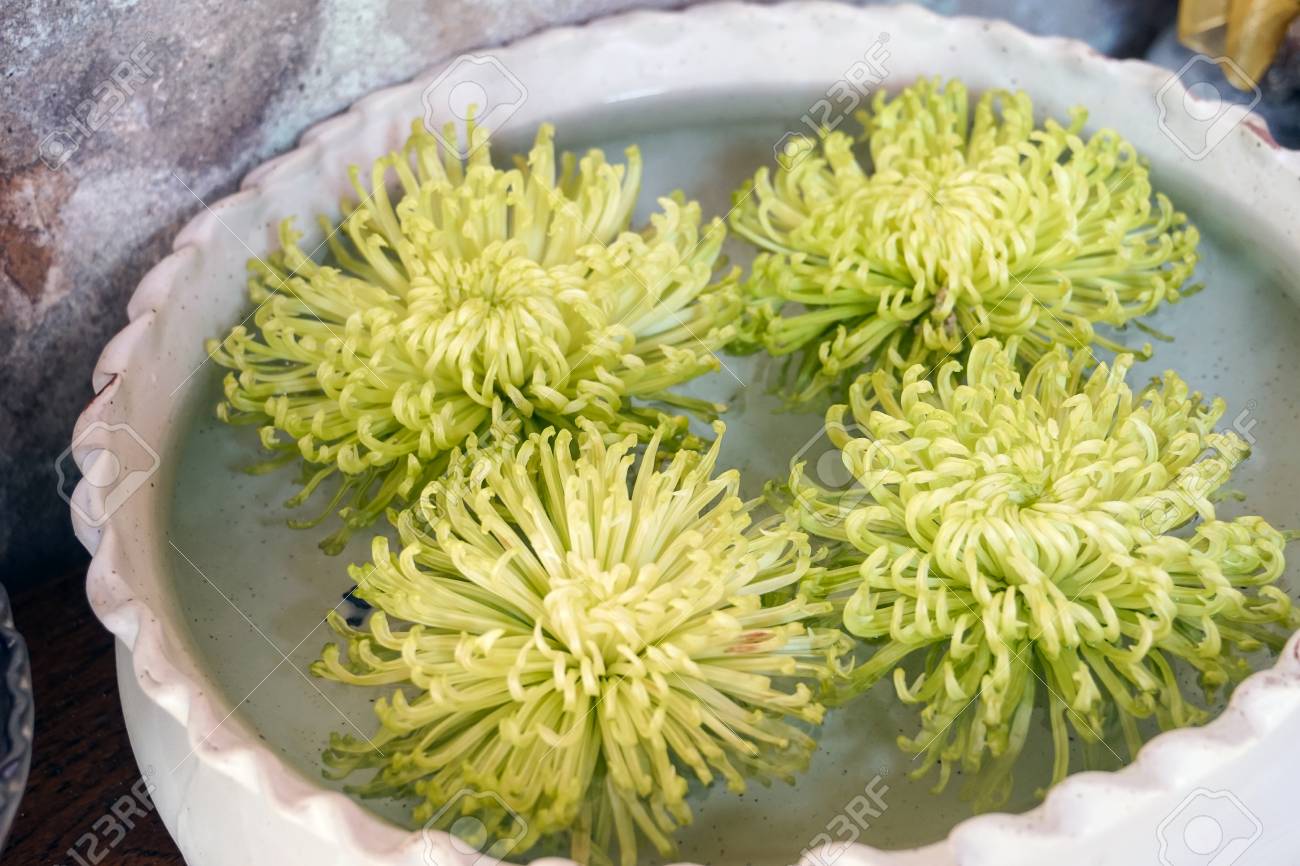 Floral Decoration Of Hellebore Flowers Floating On Water In A