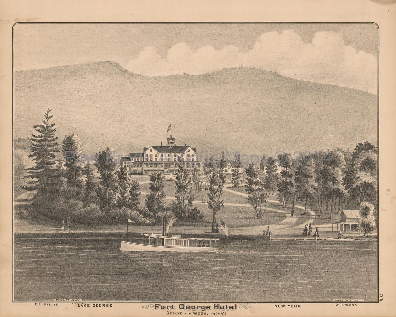 Fort George Hotel Ny Antique Print Beers 1876 Unique Adirondack