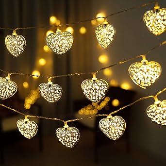 Gigalumi 20 Led Heart String Lights Metal Fairy Lights Battery