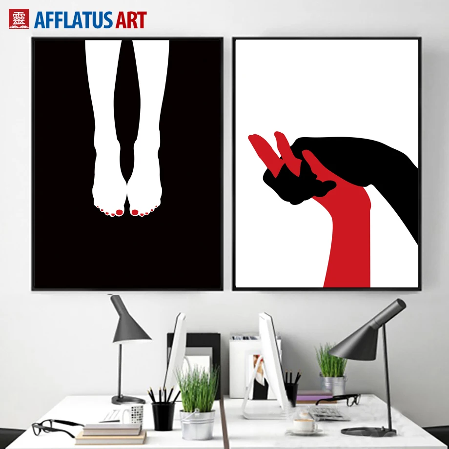 Black White Red Toe Hand Foot Nordic Posters And Prints Wall Art