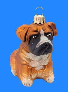 Lrg Boxer Dog European Blown Glass Christmas Tree Ornament