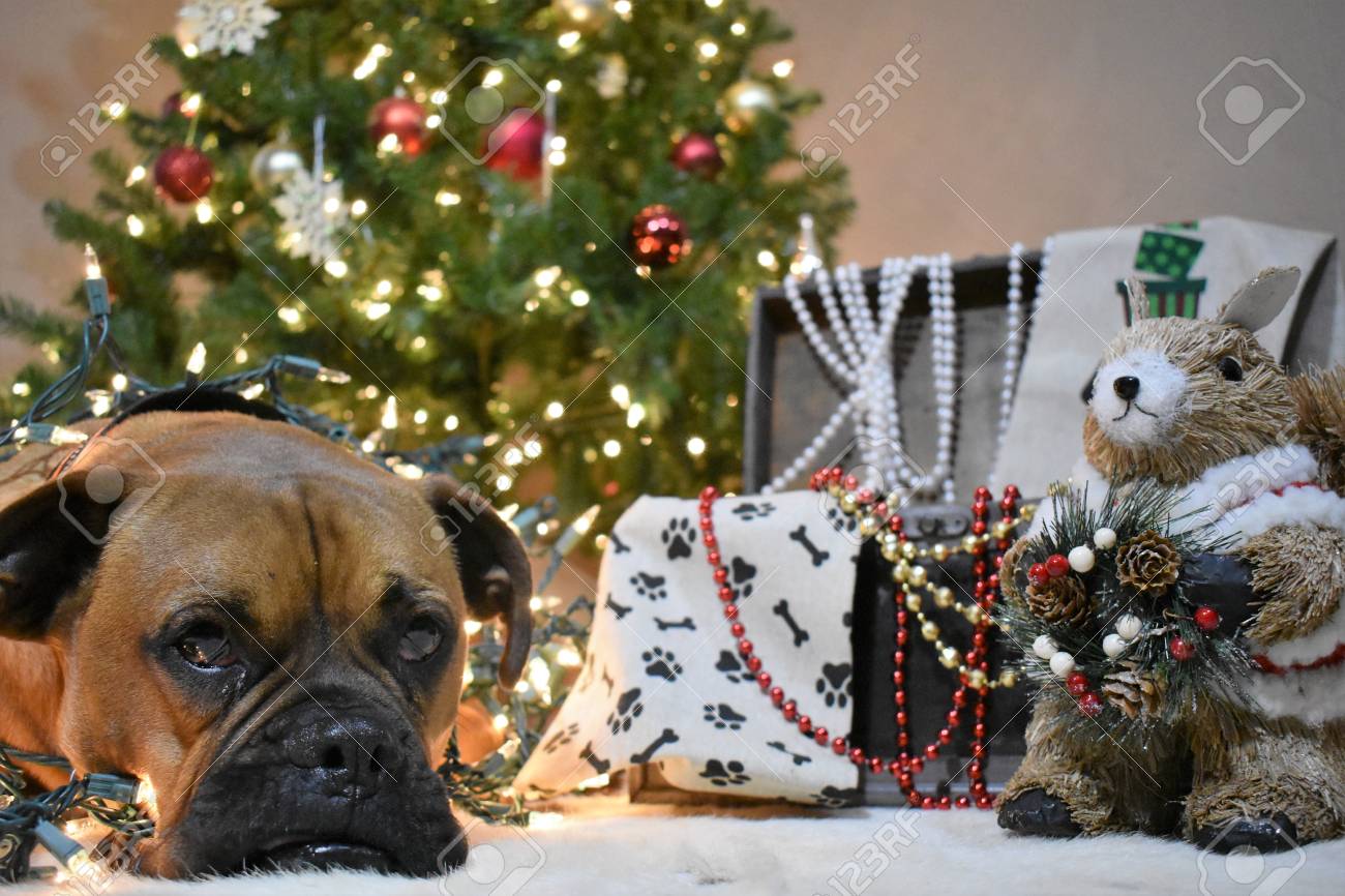 Boxer Breed Dog Christmas Portrait Stock Photo Picture And