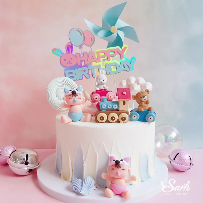 Bling Bear Baby Train Decoration Rabbit Happy Birthday Windmill