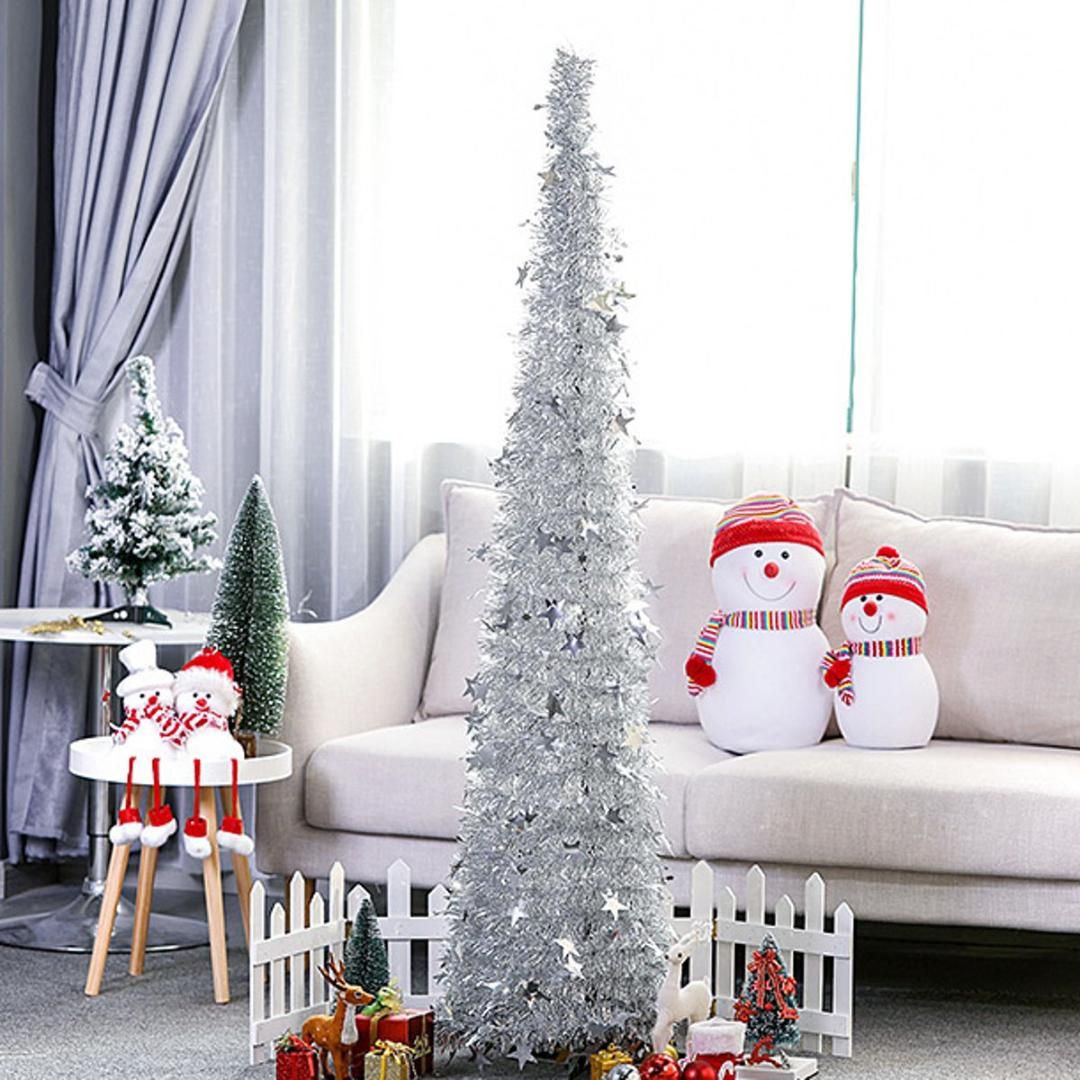 Collapsible Tinsel Christmas Tree Venue Ornaments Stand Home Mall