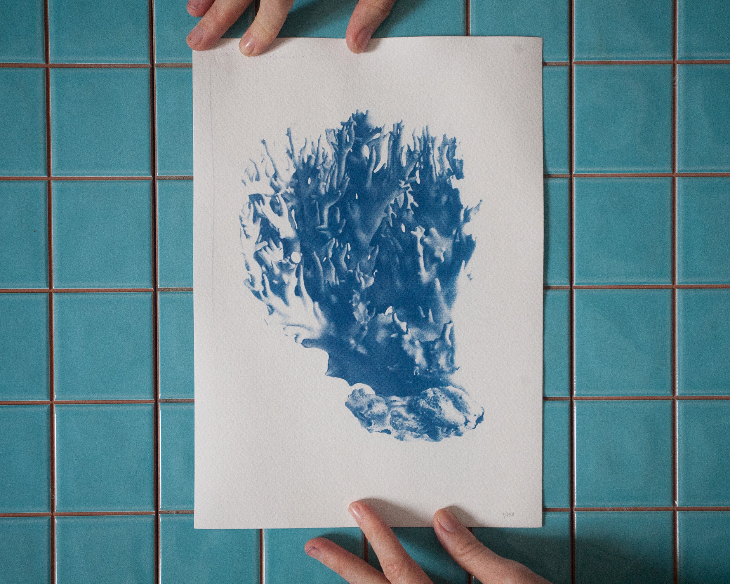 Soft Coral Handmade Cyanotype Print On Watercolor Paper Coral
