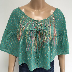 Nj Couture Green Embroidered Hand Made Decor Poncho Top Size M