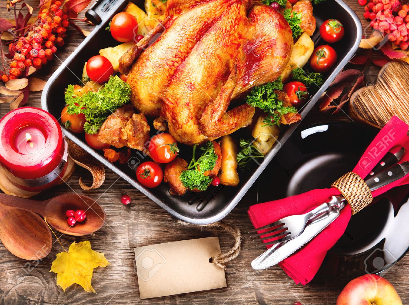 Thanksgiving Dinner Table Served With Turkey Decorated With