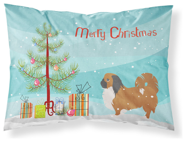 Pekingese Merry Christmas Tree Fabric Standard Pillowcase