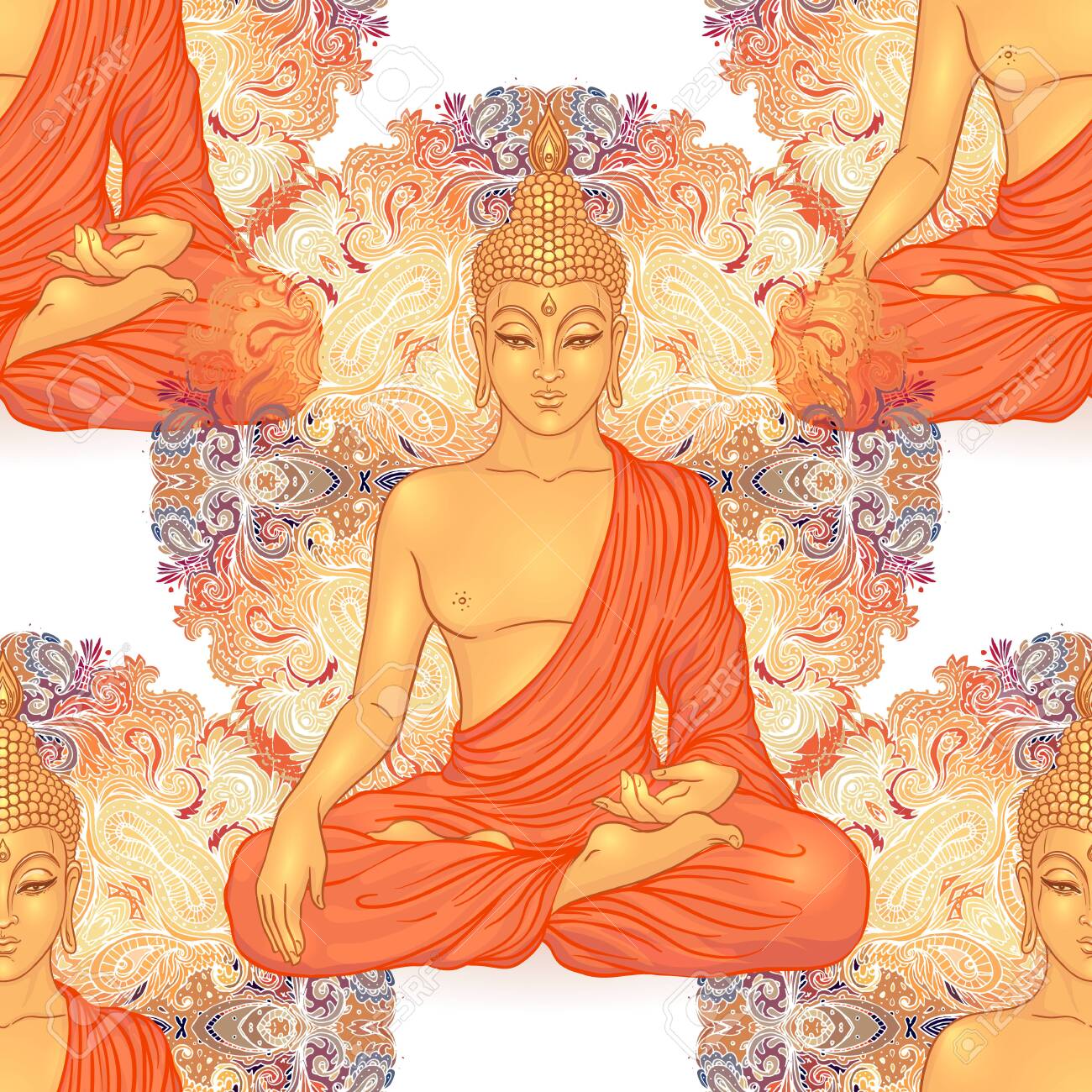 Buddha Head Seamless Pattern Vintage Decorative Composition