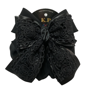 Lady Women Bun Cover Black Ribbon Show Bow Hair Clip Snood Net