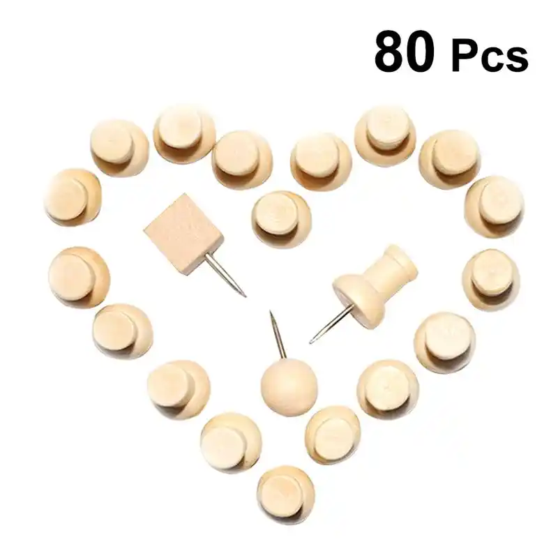 80pcs wood push pins wooden thumb tacks for map photos calendar decor diy bt.