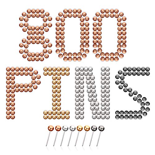 Yalis push pins map tacks 18 inch retro metallic color beads head marking pins 3 colors 300 count.