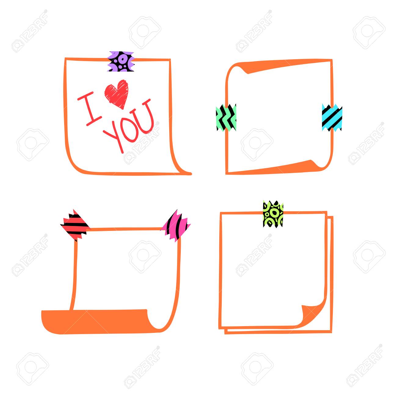Four Note Papers With Washi Tape In Cartoon Style Linear Memo