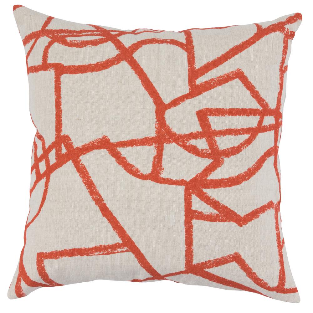 Villa Canyon Persimmon 22 In X 22 In Square Linen Hand Block
