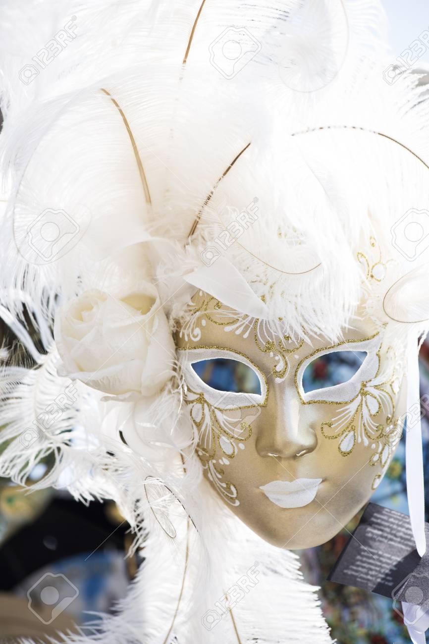 Decorative Venetian Mask With The White Feathers Stock Photo