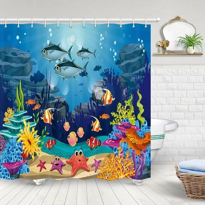 Sea Animal Coral Reefs Fish Decor Fabric Shower Curtain Bathroom