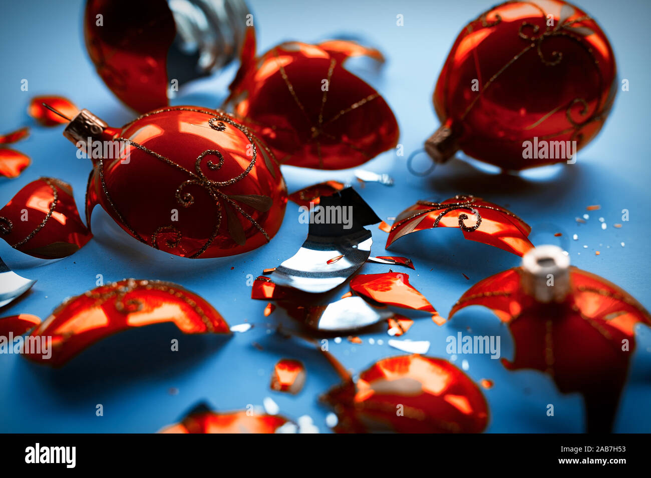 Bright Orange Glass Christmas Baubles Broken Scattered Fragments