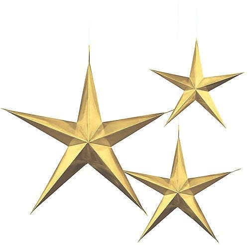 Gold star decorations. Tatuo 50 pieces christmas wooden ornaments wood snowflake angel star christmas tree round discs decorations hanging embellishments with 50 pieces strings. The party people supply a virtual galaxy of cutout decorative stars in a wide range of colours sizes materials. Stumps doesnt have just stars though there are glitter and gold sequin stars or star cutouts you can use to create 3 d dimension in your decorating.