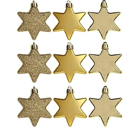 Pms Set Of 9 6cm Star Decorations In Pvc Box Gold Amazon Co Uk