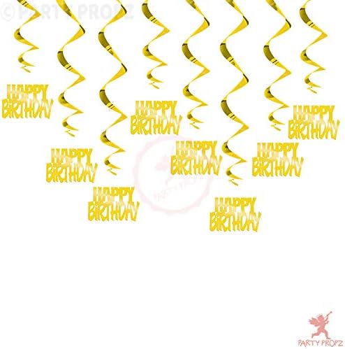 12pcs Happy Birthday Golden Swirls Hanging Decoration For Golden