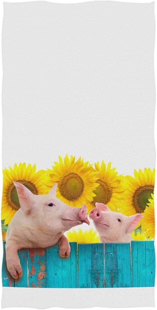 Amazon Com Agona Funny Pig Hanging On Fence Sunflower Hand Towels