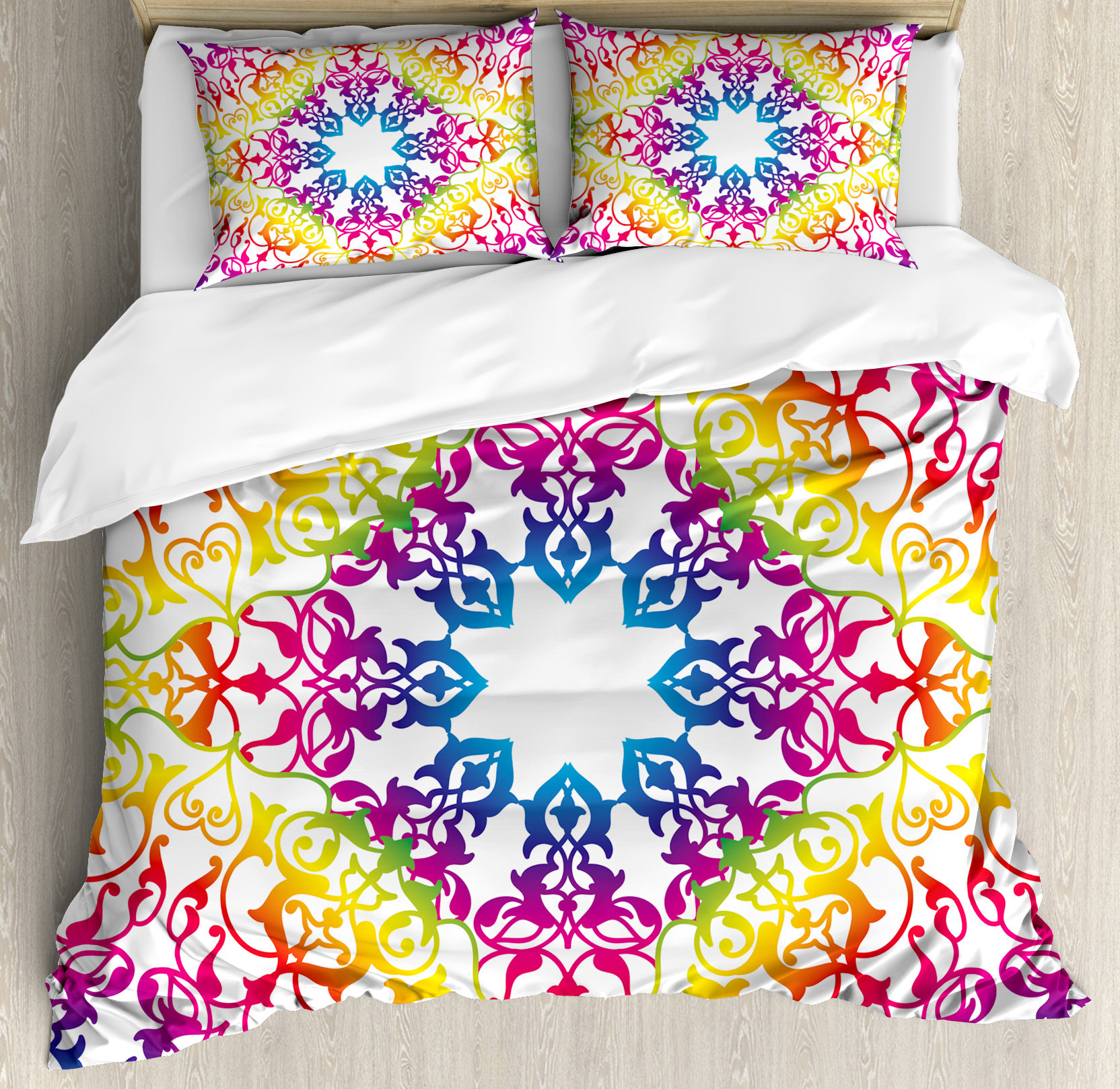 Ambesonne India Abstract Vivid Rainbow Colored Lace Mandala Tie