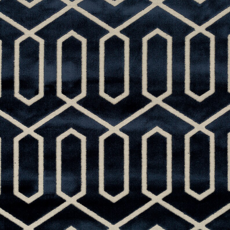 Navy Blue Geometric Velvet Upholstery Fabric Modern Blue Etsy