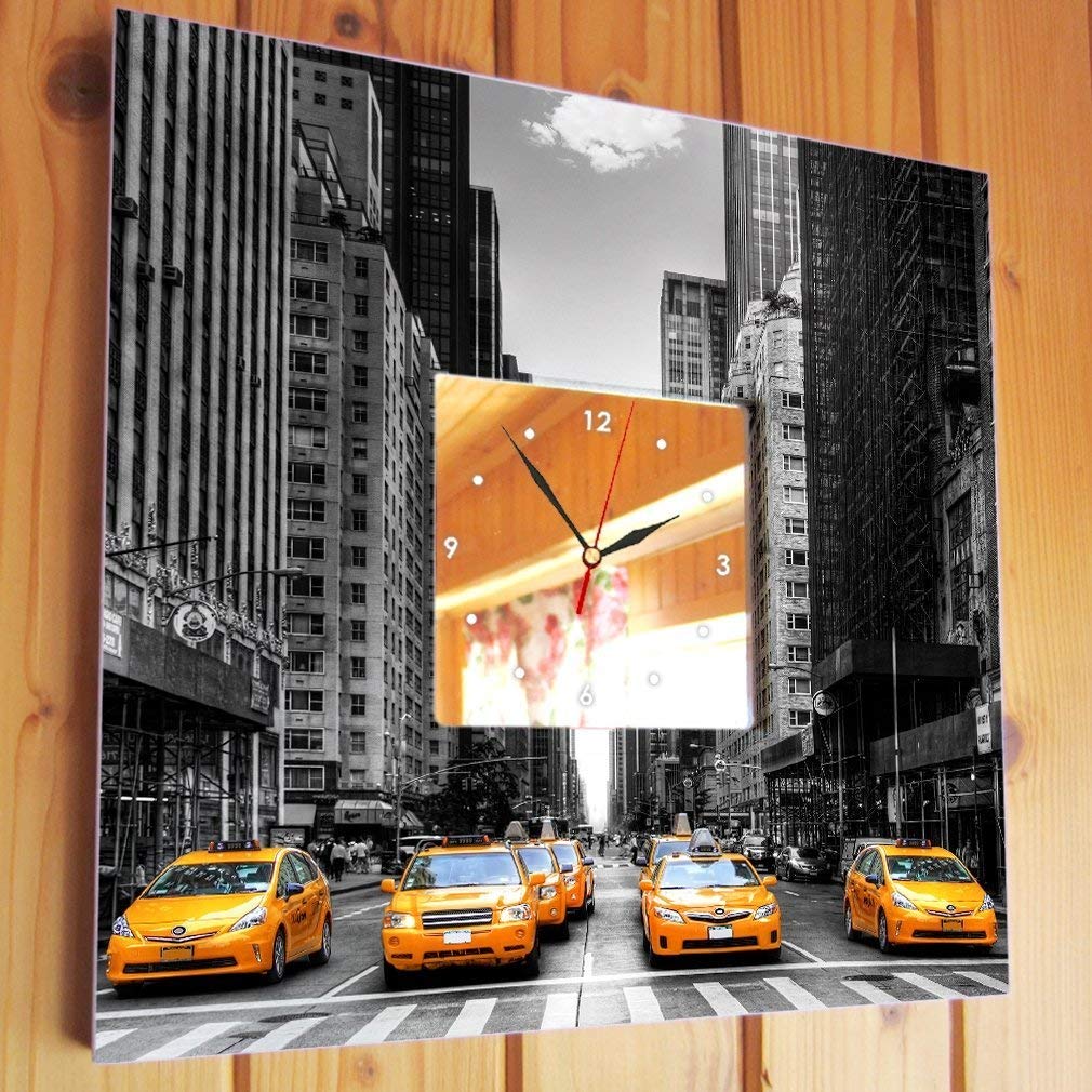 Home Decor Manhattan Yellow Cab New York Taxi Wall Clock Framed