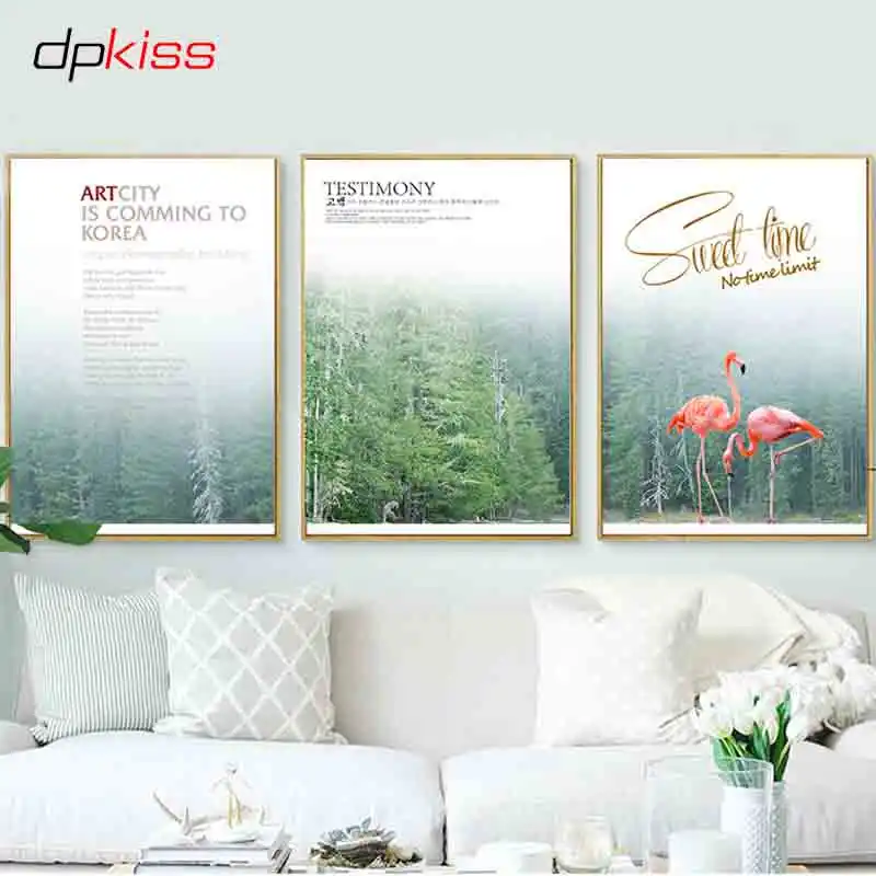 Dpkiss Lakeside Flamingo Canvas Painting Nordic Picture Decor Art