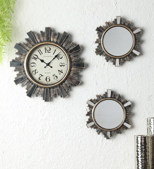 Buy Copper Antique Sunlight Mirror Wall Clock By Exim Decor Online