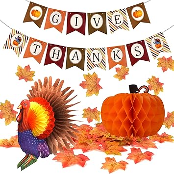 Fepito Give Thanks Banner With Paper Colorful Turkey Pumpkin