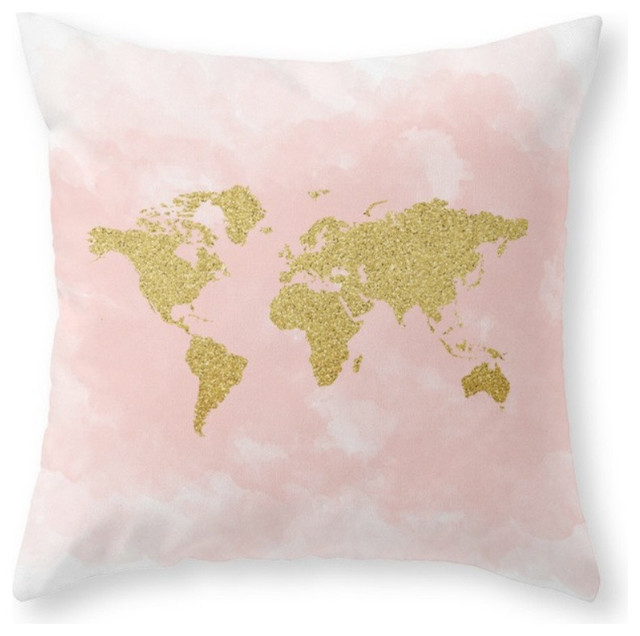 Gold Glitter Map Pink Gold Pastels Pillow Cover Contemporary