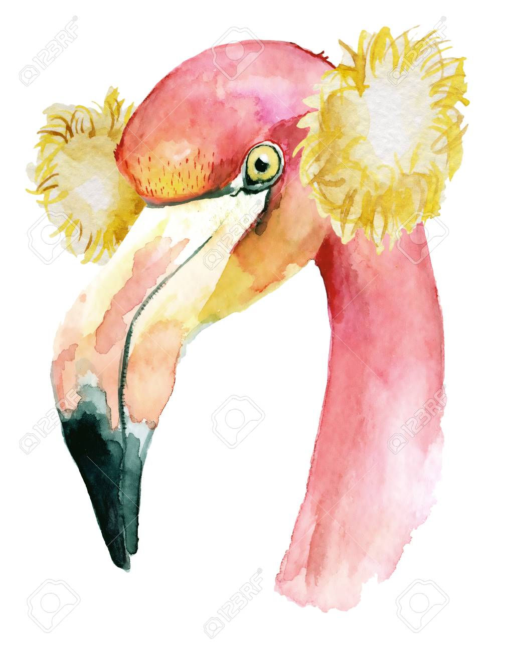 Christmas Pink Flamingo With Winter Decorations Yellow Headphones