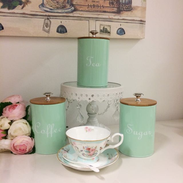 Coffee Tea Sugar 3 In 1 Canisters Tiffany Blue Furniture Home