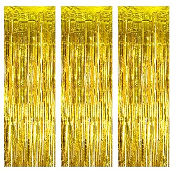 3 Pack Foil Curtains Metallic Foil Fringe Curtain For Birthday