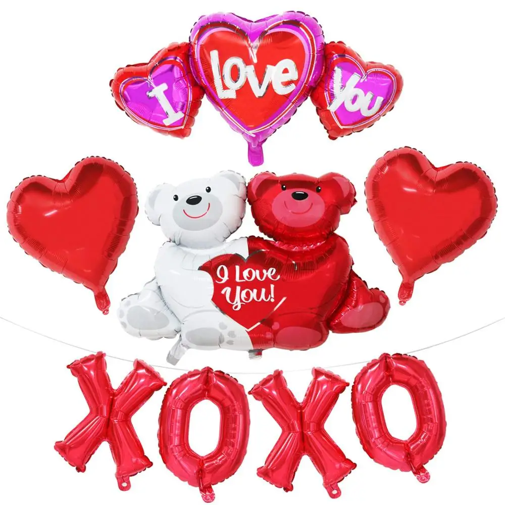 Valentines Day Decorations Red Balloon Set Xoxo Couple Bear I Love