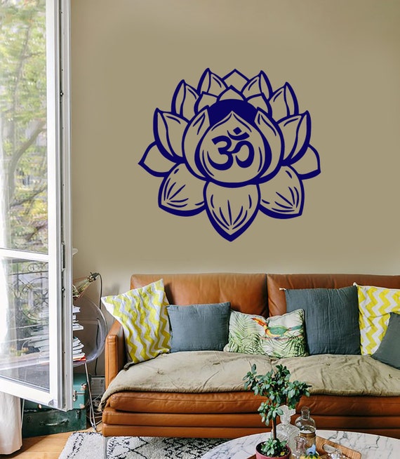 Wall Vinyl Decal Bedroom Decor Yoga Symbol Om Lotus Flower Etsy