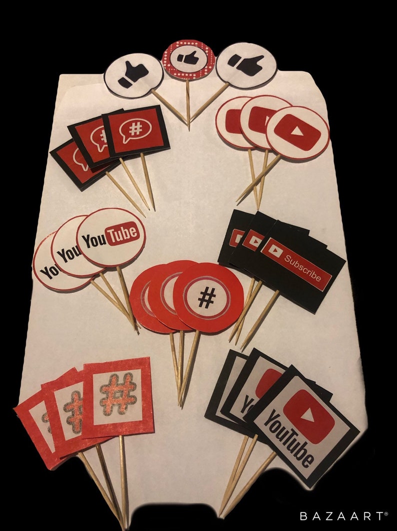 Youtube Party Cup Cake Toppers Social Media Birthday Supplies Etsy