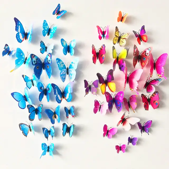 12pcs Pvc 3d Butterfly Wall Decor Cute Butterflies Wall Stickers